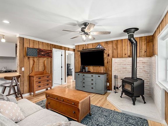 Escape to peaceful country living in this charming home, nestled on just over 3 acres of serene land. Enjoy your morning coffee or evening sunsets on the spacious 36x10 covered porch and relax on the back covered patio, perfect for entertaining. This cozy retreat offers seclusion and privacy yet is just a short drive to town. Inside, you’ll find natural pine floors, a wood-burning stove, and both kitchen and bath have been freshly re-modeled creating a warm and inviting atmosphere. A detached metal garage offers 25x25 ft of work space, in addition to the 10x15 ft storage shed. Enjoy the durability and efficiency of metal siding and roofs! Recent work includes added insulation, new transfer switch, water heater, HVAC, ductwork, fencing, doors, the wood stove and more! If you're looking for a quiet getaway, that is move in ready, this is it!