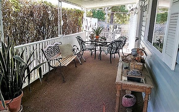 Decorator touches on this ready to move in upgraded unit. Skylights in FR and Kitchen. Beautiful Laminate wood flooring, updated kitchen, all new windows. Extra office in family room plus office desk area in guest bedroom. A special Murphy bed. Large mirrored closets in bedrooms.Double sinks in master bath with added shelve space built. Laundry room has extra sink. Private yard with awning and a privacy wall. Enter on concrete steps. Cadillac of parks with activities, walk to beach, shops. Listing Agent: Charlotte Colosia 760-420-0440 CA BRE# 00596646 CA BRE# 00616663