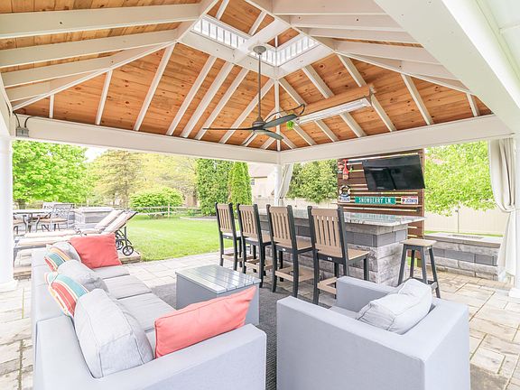 Experience the ultimate in indoor-outdoor living with this beautifully updated home! Enjoy multiple patios, an Amish-built gazebo w/ granite and flagstone bar, TV, fridge, heater, fan, LED lighting, and a hot tub. Inside you'll find 3,117 finished sqft, an open floorplan, accented by hardwood floors, ideal for hosting gatherings. A cook's kitchen featuring a large eating space, granite counters, island, SS appliances, gas stove & plenty of cabinets, overlooking the large great room, relax with a cozy fireplace, formal living and dining rooms, plus an office. Adore the stunning owner's suite with new spa-like bath, generous secondary bedrooms, and a large loft. The finished basement provides even more space for family activities. Everything built & updated with to quality.