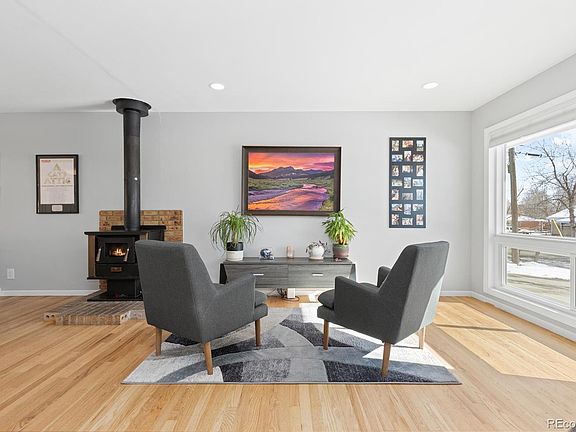 This beautifully updated ranch home in Arvada offers an unbeatable location just five minutes from Old Town Arvada. Enjoy easy access to top-rated restaurants, unique shops, and entertainment in this vibrant community. Conveniently located with easy access to Denver, it offers the best of city and suburban living. Parks, recreation centers, and the nearby high school are just a short walk away, making this an excellent choice for those looking for both comfort and connection. Inside, stunning hardwood floors flow throughout the main living spaces, complemented by large windows that fill the home with natural light. A cozy wood-burning fireplace connects the living and dining areas, adding warmth and charm. The kitchen is sleek and functional, featuring stylish white cabinetry, stone flooring, stone countertops, and stainless steel appliances, including a gas range with a statement range hood. The primary bedroom is a bright and tranquil retreat, complete with a beautifully upgraded ensuite bathroom featuring a step-in shower and contemporary finishes. An additional bedroom and full bathroom offer flexibility for guests, a home office, or extra living space. Step outside to a spacious backyard with a brand-new fence (2024) for privacy and a concrete patio ideal for relaxing or entertaining. Additional upgrades include a new concrete driveway and patio in 2021, newly installed windows in 2021, a sealed and insulated crawl space with a sump pump in 2023, and freshly painted ceilings in the living room and bedrooms in 2025. Thoughtfully updated and ideally located, this home offers the perfect blend of modern convenience and neighborhood charm!