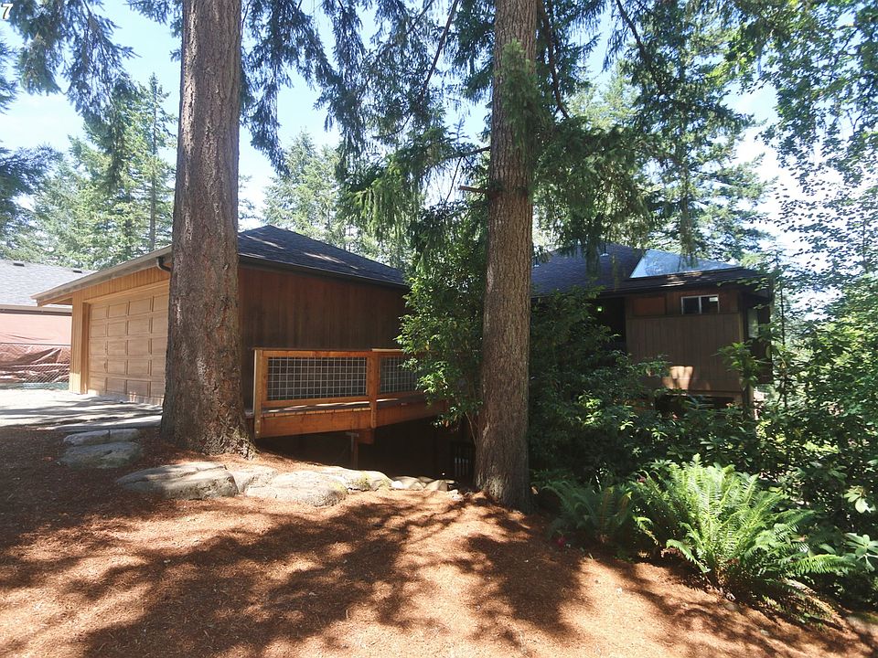 Quiet culdesac with wildlife in mature landscape! Custom home w/ rare flat driveway in the hills. Large kitchen diamond in the rough. Walk-in tile shower in master. Decking new, babbling 30' stream with pond, propane firepit. Shop/hobby outbuilding. New carpet, flooring, newer roof. New fence. The home is very private. Neighbors are blocked out by trees, positioned so no one can look into the home. $154 square foot.