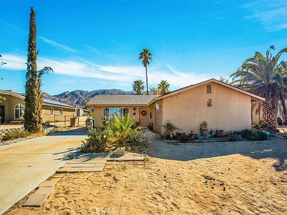 Welcome to this delightful 2-bedroom, 1-bath home offering 1,132 sqft of cozy living space. Featuring a custom-built island and breakfast bar, this home is perfect for entertaining. Recent upgrades include a newer roof, solar panels, and freshly painted fascia, ensuring both efficiency and style. The property boasts mature desert landscaping and a sturdy retaining wall for added protection against flooding. Enjoy the convenience of nearby attractions, including Tortoise Rock Casino, Joshua Tree National Park, Knotts Sky, and a dog park. Plus, you’re just a short drive from Freedom Plaza and the local farmers market. This charming residence is an ideal blend of comfort and location—don’t miss your chance to make it your own!