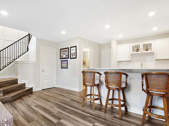 This beautiful end-unit townhouse is in move-in ready condition with many high-end finishes, freshly painted and new carpeting. It is one of the larger townhouses with an extra bathroom, additional windows provide lots of natural light and a larger property with more green space. The large kitchen features a spacious island, quartz countertops, white cabinets, stainless steel gas appliances, and Smart Home Technology. Refrigerator, water softener, R/O system and Washer & Dryer stay! The primary suite includes a deluxe tiled shower and quartz vanity. The finished lower level boasts a full bath, a stunning wet bar with quartz countertops, cabinets with glass doors, an under-mount refrigerator, and a mounted TV! Additional features include a deck, water softener, R/O system and Ring Door Bell. This unit is one of the larger townhouses in the neighborhood. Located in the Prairie At Legacy, which offers over 80 acres of green space, walking trails, parks, access to pool and other amenities, (there are two additional HOA nominal fees for amenities). This gem is a must-see!