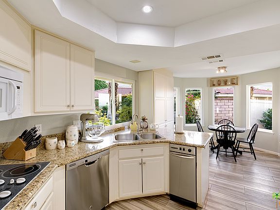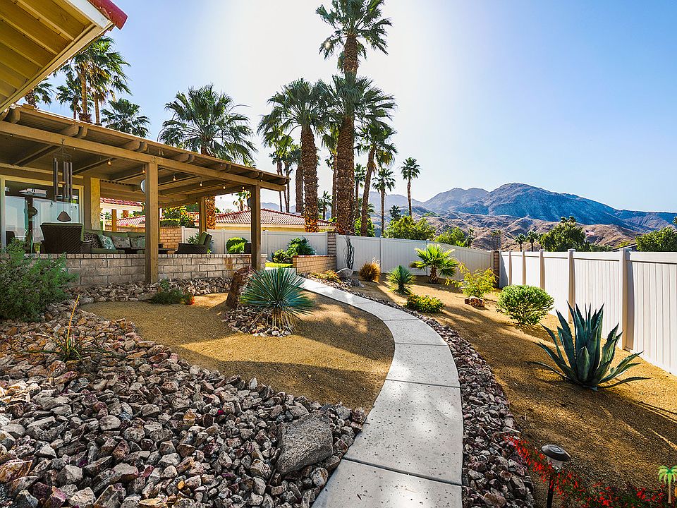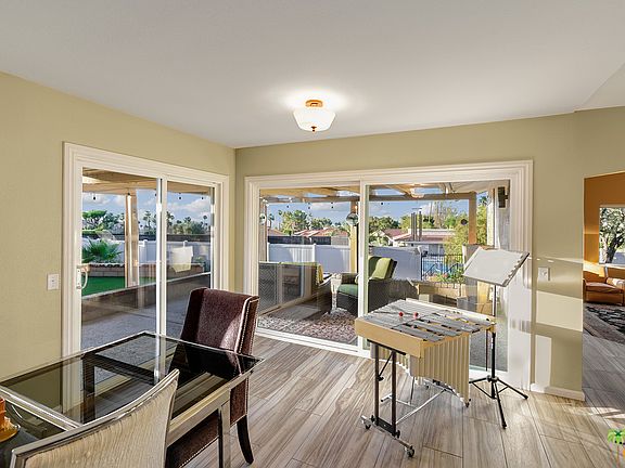 PANORAMIC VIEWS AND OVER 3,000 SF OF ELEGANT LIVING! Set on an incredible, end of the cul de sac, elevated lot, this STUNNING home feels like a first class ESTATE! Walls of windows welcome the mountains, sun, and desert cityscape! The home has a HUGE 2 BR / 2 BA main house with TWO big open-concept living areas , TWO MASTER SUITES, and THREE gorgeous patios! Fall in love with the formal entry; newly remodeled top-of-the-line chef's kitchen with wine fridge and clear ice-maker and attached breakfast nook; dual facing fireplace; dining area; master suite with vaulted ceilings and walk-in closet, more! The BIG CASITA is detached with a complete 1 BR / 1 BA layout and a private patio that could provide a great guest area; caretaker's cottage; or rental income! Quick, adjoined access to the community pool and tennis courts offers easy access to 1st Class amenities! A 3-car garage, fenced yard, and sprinkler system, too! The world class appeal of El Paseo is only moments away! Live in the main house; rent the casita - or vice versa!
