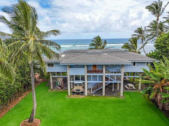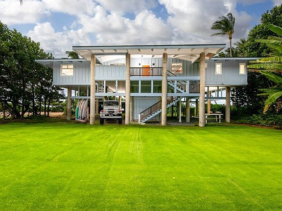 This property is a true diamond in the rough in one of the most coveted locations in all of Kauai. Here you will find an extremely well built and well laid out 3 bedroom / 2 bathroom home of 2,100 sqft set just a few feet from the sandy beach in Haena on Kauai's North Shore. Additionally, the property should qualify for an additional dwelling unit (ADU) (Buyer to confirm with county). The home offers breathtaking ocean views from its huge great room and spacious bathrooms and bedrooms. It also features a new roof, vertical grain Douglas Fir floors throughout, ipe decks, railings and stairs, and excellent mountain views as well. A remodeler's dream, this home is priced to sell for the person with a vision and an eye for detail.