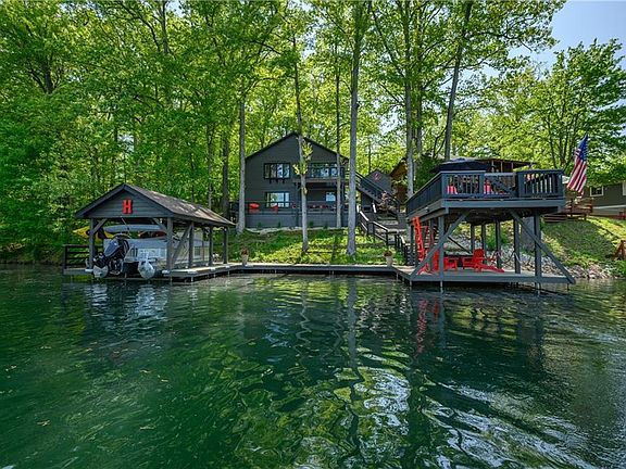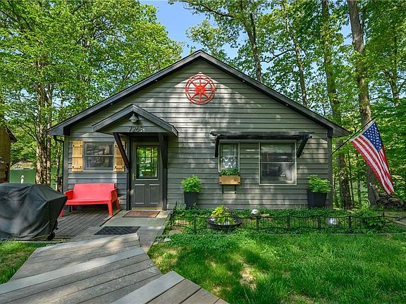 Stunning modern rustic cottage on Cordry Lake. Recently updated 1 bedroom, 1 ½ bath with flex/bonus room in basement that has new Pella windows and 2 egresses that can accommodate your overnight guests. Newly renovated kitchen with all new stainless steel appliances, quartz countertops, and Kraftmaid cabinetry. Large primary bedroom and spacious walk-in closet with recently installed washer/dryer. Spectacular views from the dining and living rooms. Multiple outdoor entertaining areas with minimal steps to the water. Boat house, with electric boat lift, and party deck make this house your ideal get away or full-time home. Plenty of storage in the 3 sheds. Easy access from Cordry Drive, paved road and driveway with ample parking.