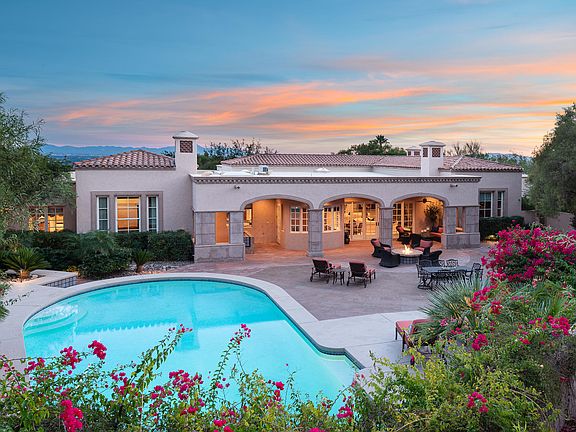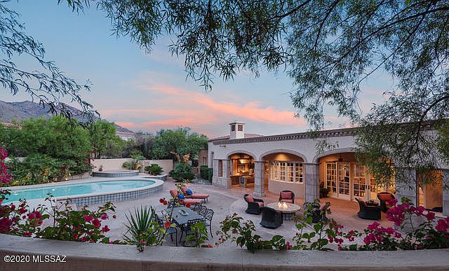 Exquisite, meticulously maintained Michael Franks designed masonry home located on an elevated, corner lot w/ exceptional views in Cobblestone, the coveted guard-gated community at the top of Campbell Ave. Sprawling single story 5 bdrm/ 7 ba home w/ lush vegetation & N/S exposure provides up-close mtn views from the resort-style backyard & the ultimate in city views from the expansive south terrace. Charming courtyard entry w/ one of a kind fountain. Grand foyer w/ adjacent den/library. Expertly designed split bdrm floor plan that includes 4 en-suite bdrms, & impressive master suite w/ FP, steam shower, separate tub, dbl vanities & huge closet. Formal living & dining room designed for large scale entertaining flow to south terrace w/ captivating views of the valley below. Gourmet kitchen w/ center island w/ prep sink & breakfast bar, 2 dishwashers, Wolf gas range, Sub-Zero refrigerator, Sub-Zero Freezer, large walk-in pantry & built-in breakfast nook. Family room w/ FP off kitchen has wet bar & walk-in wine cellar w/ commercial grade temperature control system. Deep covered patio lined w/ pavers off of kitchen w/ outdoor kitchen area has built-in BBQ, hood vent, sink & built-in bistro height buffet table. Effortless indoor/outdoor living with immaculate backyard w/ pool, spa, gas firepit, breathtaking mountain views & lush vegetation. Large laundry room w/ sink & plenty of storage. 5th en-suite bedroom currently set up as exercise room. Oversized 3- car garage. Plenty of extra storage. Rare opportunity to own a premium lot in one of Tucson's most desirable communities. Homesites like this are simply no longer available in the area. Conveniently located in the center of the foothills just minutes to La Encantada Mall, top restaurants, world-class golf resorts, the University of Arizona and much more.