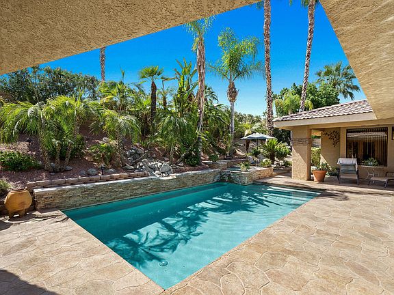 This stunning home in nestled in one of South Palm Desert's most desirable neighborhoods -The Summit. An alluring courtyard with cascading waterfall welcomes you into tasteful interior design elements~ high ceilings, travertine floors, custom paint, new carpet, new AC and window treatments. Gourmet Kitchen with slab Granites, rich cabinetry, newer appliances, center Island & 2 pantries! Breakfast bar opens to the Family Room with cozy stacked stone Fireplace. Step down Living Room has impressive Mirror to ceiling Fireplace, Wet Bar, and a wall of glass with views out to the pool and the beautifully landscaped yard. The easy flow from interior to exterior allows for entertaining. A lavish Master Suite with sitting area, spa-inspired bath, shower and walk-in closet, 2 Bedrooms featuring with a 2nd bath and Powder Room complete the home. Enjoy the incredible resort style entertaining backyard which is centered around the stacked stone newly resurfaced Pool, Spa, flowing wall fountain, built in BBQ & lush desert Landscape over 1/4 acre sets the tone for the ultimate desert lifestyle. 3-car attached garage. Easy access to the many hiking trails in the area, shops on El Paseo and fabulous restaurants.