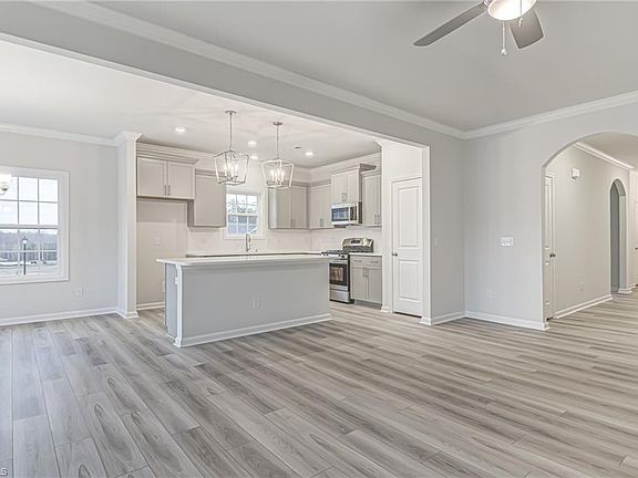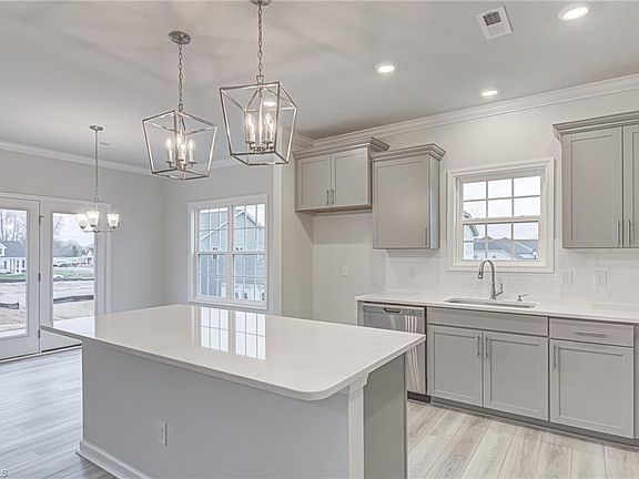 Homesite #38- Fabulous one-story Bates plan! This modern ranch has all the room you've been looking for! As you enter you are greeted with beautiful luxury vinyl plank flooring that flows throughout the common areas. You will love entertaining in this kitchen with its fabulous large island that's open to the great room. The primary suite is tucked away right off the great room and the en-suite features double sink vanity, tiled shower, and huge walk-in closet. The secondary bedrooms are located at the front of the house giving you a nice separation from the primary. Upstairs is a spacious guest room with a full bath. You will love the space this home has to offer.
