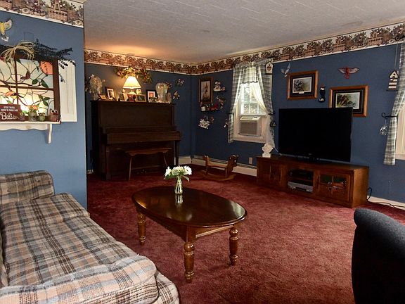 Charming and cozy farmhouse (1988 square ft) situated on 1.43 acres dotted with mature trees and lovely landscaping. Large beautiful sunroom and deck overlooks the countryside-perfect for star gazing or watching amazing sunsets. Country living but minutes from the city with Holland Patent school district. 2 car attached garage, out building with electricity