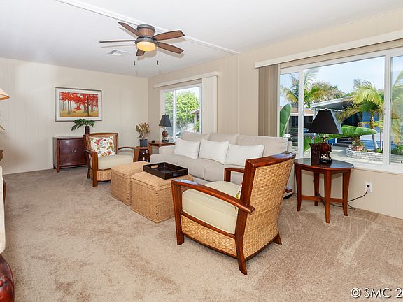 Lovely 2 bed, 2 bath, 1464 esf home in the 5 Star, Active Senior community of Lakeshore Gardens. Spacious interior with upgraded stainless steel kitchen appliances, remodeled master bath, giant covered patio and central AC. Enjoy the coastal breezes while entertaining or relaxing. Situated just blocks from the beach, with a shopping center across from the community, and just 4 miles from both Carlsbad Village and Encinitas Village, you couldn't have a more convenient location! This neighborhood has 10 ponds and lakes, a pool and spa, heated year-round, and open 24/7. The clubhouse is gorgeous with all amenities you could desire- pool table, meeting rooms, recreation room, and beautiful library. Community also includes a fitness center. If you think you might like a brand new manufactured home in this location- we can handle that for you too! You can design the home of your dreams, and put it right here in paradise!