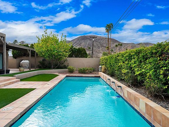Exceptional Opportunity to Own a Classic Santa Fe Residence in the Heart of South Palm Desert.This condo alternative offers a unique blend of charm and warmth with authentic Spanish-inspired finishes. Enter through a gated courtyard that leads to a double glass panel front door. Inside, you'll be welcomed by a thoughtfully designed open floor plan that flows seamlessly for modern living. Key features include custom flooring, recessed lighting, and a kitchen equipped with Bosch appliances, all of which overlook a spacious Great Room. The outdoor living area is your own very private desert retreat. Complete with a sparkling pool, pavers, lush landscaping, outdoor lighting, and breathtaking views of the surrounding mountains. Bonus: No HOA's, Solar Energy, Dog Run, and just minutes from World Class Shopping & Dining on El Paseo, as well as Hiking, Golfing, Movie Theaters and all that the Desert Lifestyle has to Offer!