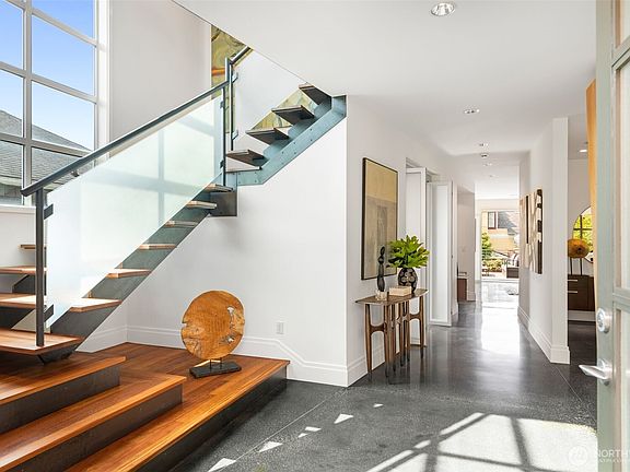 Stunning custom one-of-a-kind sanctuary on Capitol Hill’s coveted 13th Ave E. Showcasing dramatic, hand-forged ironwork, polished concrete, and Brazilian cherry floors, giving the home a singular, artful edge. Expansive, light-filled living throughout with city and Olympic Mt views. An entertainer’s kitchen flows to private patios and greenery. 3 garages, carport + off-street parking are rare in this neighborhood. Generous lower-level w/9-ft ceilings, offers endless possibilities for additional living/ADU, studio and exercise. Multiple bonus rooms & plentiful storage. Quiet, tree-lined setting moments to Volunteer Park, eateries, and light rail. Never again will you experience this exceptional combination of design, function, and location.