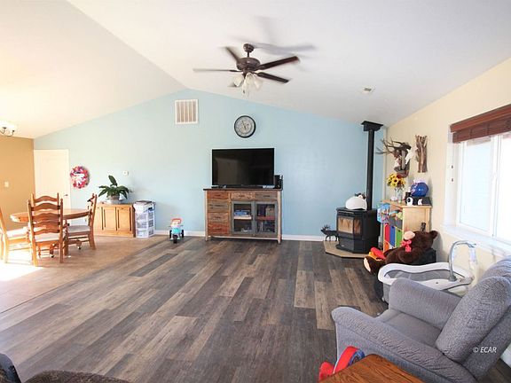 • Interior Features: Flooring- Vinyl, Flooring- Carpet, Walk-in Closets, Flooring- Tile, Vaulted Ceilings, Pellet Stove, Ceiling Fan(s), Chandelier(s)