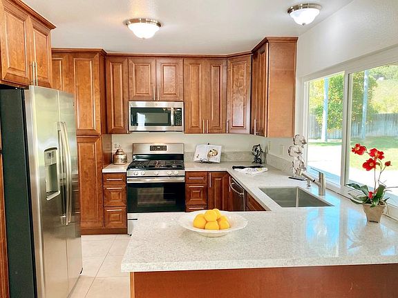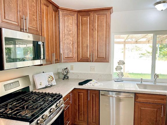 Lucky, lucky, you! You'll be pinching yourself when you imagine moving into this outstanding recently UPGRADED home in Summerfield! SHARP CONTEMPORARY PLANK FLOORING throughout!! No carpet anywhere in here - all easy-care floors. FULLY REMODELED KITCHEN....... QUARTZ countertops NEW, gorgeous kitchen cabinets were installed in 2020 NEW GE stainless steel appliance package installed in 2020 NEWLY UPDATED fireplace surround All on top of a backyard almost the size of a FOOTBALL FIELD!! Living room is big & open & will hold almost any size sectional or big-screen TV. Vaulted ceilings & cozy fireplace make it a very inviting space. Dining room will hold large table & chairs. UPGRADED kitchen features: GAS cooking Dishwasher Built-in microwave Double-door fridge with icemaker & water dispenser Loads of cabinetry with soft-close hinges, lazy susan corner cabinets & double pantry. Big window over sink. Master bedroom will hold king bed & has double French doors to backyard patio 2nd & 3rd bedrooms will both accommodate queen beds Both bathrooms have also been beautifully updated with stone shower surrounds, travertine flooring, updated vanities, mirrors & custom light fixtures. Glass shower doors in both bathrooms. Laundry room off garage has washer/dryer Attached two-car garage Gigantic backyard features dual decks - one for dining with overhead sun trellis and one for sunning -- fruit trees and loads of room to run. If you don't already have a dog that likes to zoom around, you'll need to get one or a soccer team!! GREAT SCHOOLS....... Ocean Knoll Elementary Oak Crest Middle School La Costa Canyon High School Easy freeway access, shopping, beach only a short drive away! HURRY!! Please contact us to schedule your tour NOW! Due to this being an occupied home, showings will be limited. Scheduling tours for mid-day on Thursday. This RARE FIND will fly out the door!!