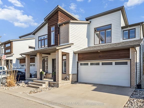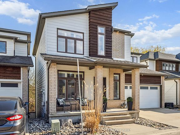 Welcome to one of Byrons most sought-after vacant land condo communities. This beautifully appointed 3+1 bedroom, 3.5 bathroom home offers the spaciousness of a detached residence combined with the low-maintenance exterior. Step inside and be welcomed by 9-foot ceilings, an open-concept floor plan, expansive windows, glass railings, and sleek modern finishes. The generously sized living room is perfect for entertaining and seamlessly connects to the kitchen and dining area, where sliding doors lead to your private patio overlooking green space and includes a natural gas hook up for your BBQ. The main floor also features a convenient powder room and laundry area. Upstairs, you'll find a bright and spacious primary suite complete with a walk-in closet and a spa-inspired ensuite bathroom featuring double sinks, a tub, and a large glass shower. Two additional well-sized bedrooms provide plenty of space for family or guests. The finished lower level includes a versatile recreation room, a guest bedroom, a full bathroom, and walkout access to a lower deck ideal for extra privacy or relaxation and includes a shed. Updated furnace (2024). A common element fee of $265.00/month covers private road and private drive maintenance. Come and discover everything Unit 3 at 727 Apricot Drive has to offer. Its more than a home, its a lifestyle.