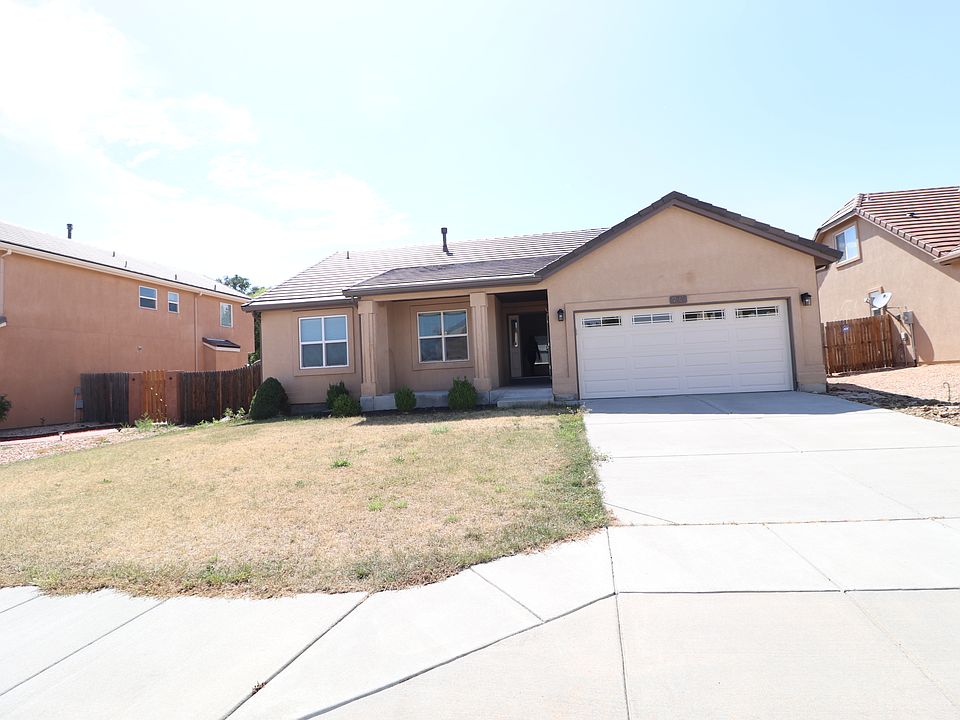 Amazing stucco ranch. Main level living, with a full basement! Inviting covered front porch. Wide open floor plan with vaulted ceiling includes living room with gas fireplace, Kitchen with breakfast bar, pantry and wood floors, along with dining area and back yard walk-out. Three bedrooms on the main level include the master suite with 5-piece bath and another full bath and laundry room. Large unfinished basement. The back yard has a large paver patio, lawn, rocked area, and privacy fence! Spacious two-car garage. Amazing stucco ranch. Main level living, with a full basement! Inviting covered front porch. Wide open floor plan with vaulted ceiling includes living room with gas fireplace, Kitchen with breakfast bar, pantry and wood floors, along with dining area and back yard walk-out. Three bedrooms on the main level include the master suite with 5-piece bath and another full bath and laundry room. Large unfinished basement. The back yard has a large paver patio, lawn, rocked area, and privacy fence! Spacious two-car garage and neighborhood sidewalks. A must see!