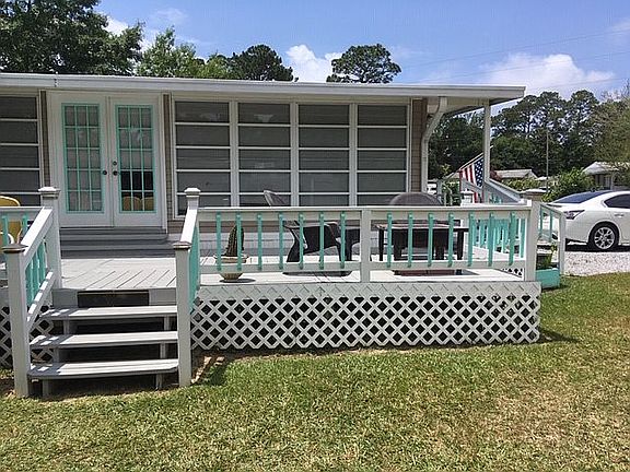 Can't beat this price for a 2-lot home in Spanish Cove. Well cared for Park Model plus adjoining lot. Owners closing on new home and motivated to sell. Laminate flooring through out. Freshly painted. New window treatments. All appliances included and most furnishings. AC/Heat pump replaced in 2017. Heated & cooled Sun room. And 8' x 16' Screen porch. Large deck to sun, BBQ or just relax. Shed/workshop w/washer & dryer and A/C. Room to park RV or Boat with RV hook-ups. Spanish Cove amenities (see spanishcove.org). Close to beaches and Public boat ramp in Lillian. Please Call to schedule home tour. Lawn upgrade allowance of $1,500 at closing.