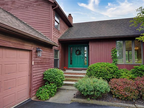 Sickles built 2218 sq ft contemporary on 5.15 acres! It doesn't get better than this! Sought after area with lovely homes. Caledonia Mumford schools! Wonderful large, very open livingrm/diningrm with cathedral ceilings. Wood trim and some hrdwd fls throughout. Family room, bedroom, full bath, and laundry all on walk in level. Perfect for in-law or teenager. New toilet, faucet and shower plumbing upstairs. Jacuzzi tub and Woodstove (As is}. Basement area could easily be finished. Walk out from basement into garage as well as from inside the house. Deck overlooking private, quiet acreage. New water softener 4/24. Stove hood and disposal 2024yr. New luxury vinyl flooring in livingroom/diningrm 2024yr. Some updating could be done but not necessary. Pool table stays.