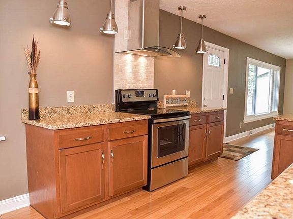 Wonderful all brick ranch that has been completely remodeled and ready for you to move in! Beautiful kitchen with new granite countertops, new cabinets and stainless steel appliances! Breakfast bar area that opens up to the great room. Stunning bamboo floors throughout great room and kitchen. 3 bedrooms all with new flooring, light fixtures and paint. You will love the remodel in the main bathroom with tile floors, ceramic tile shower surround, new countertop and new cabinets! Lower level with a finished rec room, storage area and half bathroom. Two-car attached garage with a 1-car detached garage! Brand new furnace, A/C, hot water tank, windows, all new flooring and so much more. Call today for your private showing!