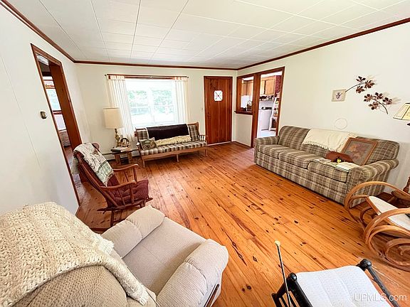 Escape to this delightful, seasonal cottage boasting two bedrooms and one bath, in a quiet wooded setting. The sun porch and breezeway serve as a gateway to the outdoors, offering a tranquil space to soak up the sun's warmth, enjoy a good book, or listen to the birds sing. Adjacent to the property is the Michigan Audubon Bird Sanctuary, making this a birder’s dream! Furthermore, you’ll appreciate that the location is just minutes from downtown Manistique, on a dead end road that leads to the Indian River. Inside, the original woodwork is complemented by built-in features that add both functionality and allure. A true sanctuary for those seeking a creative outlet, the house comes with a workshop and an attached two-car garage, providing ample space for hobbies and storage. The roof is in great condition and the boiler has been updated to keep your space warm and cozy. The appliances and most furnishings will be included in the sale, making your up north cottage that much more realistic! Don't miss the chance to schedule a viewing and embark on a new chapter of inspiration and relaxation in your life.
