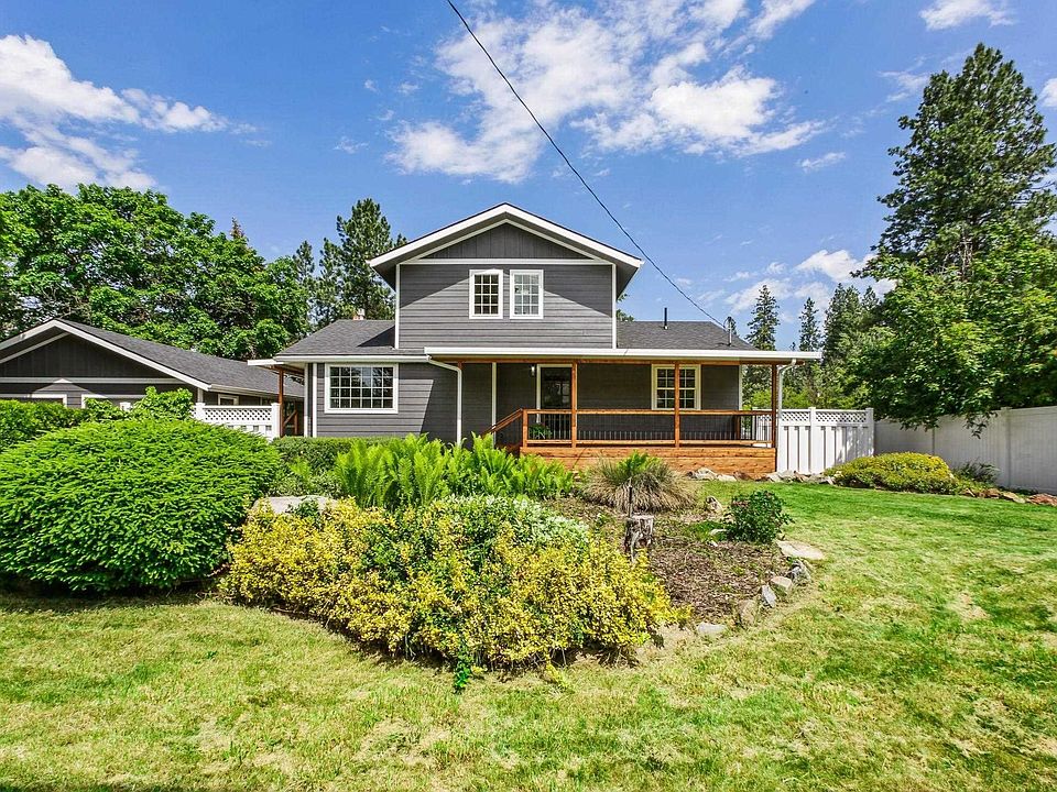 A stunning renovation with all the right touches. The beautiful custom kitchen with quartz countertops, gas stove and under counter lighting opens up to the living room and covered rear deck. The private master bedroom and en suite bath with a large walk in shower and double vanity will be your cozy retreat. New energy efficient mini splits provide heating and cooling throughout along with the gas fireplace. The Craftman-like exterior has new roofing, siding and cedar decking. Inside all cabinets, countertops, appliances, lighting, flooring, and fixtures are new. The daylight basement has two bedrooms (one oversized is non conforming) could be used as a bedroom or media room. The large two-car garage is heated and the established oversized corner lot provides the perfect garden spot and the privacy you long for (shop or RV potential). Just minutes to N. Spokane, but with that small town feeling.