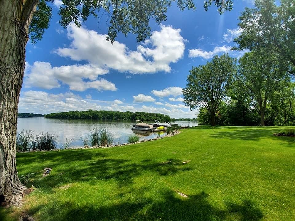 Northwoods cabin feel (with fireplace) AND on the water! This condo is truly a gem! Completely customized with a log cabin vibe for a year round vacation feeling! Two good sized bedrooms and 1.5 baths with open concept living room to dining room/kitchen for great use of space. In unit stacked washer and dryer are just a year old. Just steps out to the water and your own space for your boat. That's not enough? How about low association dues (cover installation/removal of pier) and your pet is welcome?! You have your own first floor patio too. The building has just had a brand new roof installed. For convenience, there's a private entry to your patio in addition to the sliding glass doors that lead from the living room to your patio. Enjoy extra privacy with a first floor end unit.