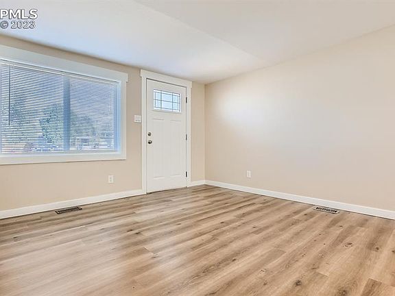 Check out this recently updated 3 bedroom, 1 bath rancher with an extra large lot!!! Located minutes to Downtown and Memorial Park with great views of Pikes Peak and the front range. Newer interior paint and carpet throughout, brand new luxury vinyl floors in living room, kitchen & laundry room. Tile floors in bathroom. Spacious kitchen features granite countertops and stainless steel appliances. Functional floor plan has a large primary bedroom with a walk-in closet on one side and additional 2 bedrooms on the opposite side of the home. New landscaping in front and back that includes new driveway with ample off street parking, walkway and patio. The backyard is fenced halfway through the lot with alley access and plenty of room to add a garage, workshop or additional unit. Imagine the possibilities for expansion! Extra large lot is zoned R-5 (multi-family residential).
