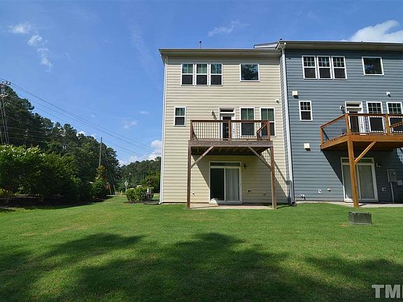 Beautiful end unit w/ large rooms & bright spaces! Open plan w/ wood floors. Curved stairway leads into the roomy living rm w/ gas fireplace. You'll love the amazing kitchen - large island, gas stove, granite, subway tile backsplash, pantry & SO much counter space! Lower level bonus room w/ full bath, extra storage & sliding doors to patio. Deck overlooks wooded area. Large master w/ walk-in closet, dual sinks, garden tub & sep shower. Extra storage & built-in shelves in garage. Trail to Apex Park & Lake.