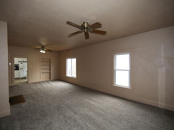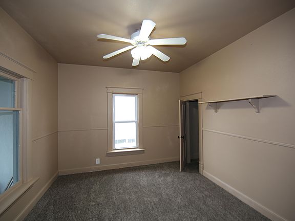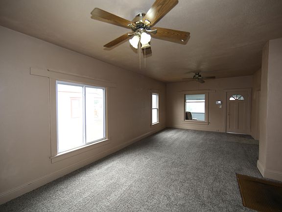 This freshly painted and newly carpeted ranch style home offers high ceiling, with 2 bedrooms, 1 full bath, a large living room with dining area off the kitchen. Located in a great neighborhood, close to downtown and an elementary school. The maintenance free exterior has a newer roof, metal siding and vinyl windows. The big back yard has a concrete patio, garden area and alley access to a large storage concrete floor garage and carport. As a starter home or investment property it has a lot of potential, come take a look!