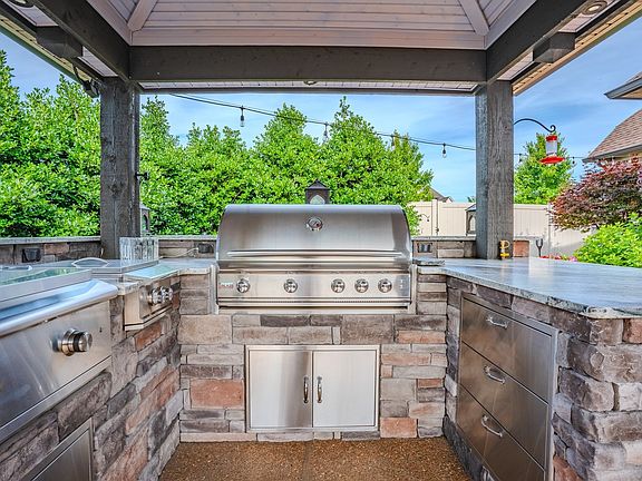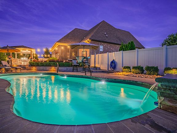 Beautiful 4 bedroom, 3 bath home in highly sought after neighborhood of Farmington Woods with your own private resort right in your backyard. The primary suite features vaulted tray ceilings, two new walk-in closets, and a bathroom with a soaking tub, WC, and dual vanities. Two additional bedrooms and a full guest bath are on the main floor. The recently updated kitchen is perfect for entertaining, with granite countertops, a middle island, pullouts, pantry pull-outs, and stainless steel appliances. Upstairs, a large bonus room leads to a 4th bedroom/full bath, & access to a large attic space for extra storage. The outdoor area includes large irrigated front & side yards, a 6ft privacy fence, a screened-in porch with infrared heaters, a heated saltwater pool with waterfall, and lush irrigated landscaping. The custom pavilion highlights a luxury outdoor kitchen with leathered granite countertops.