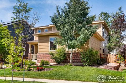 2-story in Erie Commons. Beautiful upstairs mountain views. 4 beds, 3 baths, 2.5 car garage & full unfinished basement. Rounded dry wall corners, 6 panel interior doors, 9' main floor ceilings & new 50gal hot water heater. Kitchen-stainless steel appliances & large island. Maple cabinets w/2" crown molding, refinished Maple hardwood floors on main floor, carpeting on 2nd floor. A/C, ceiling fans & 2 fireplaces. Backyard; mature trees, prof landscaping & custom Redwood pergola.