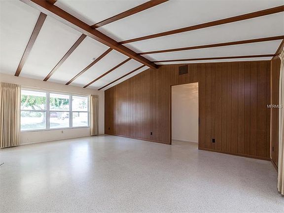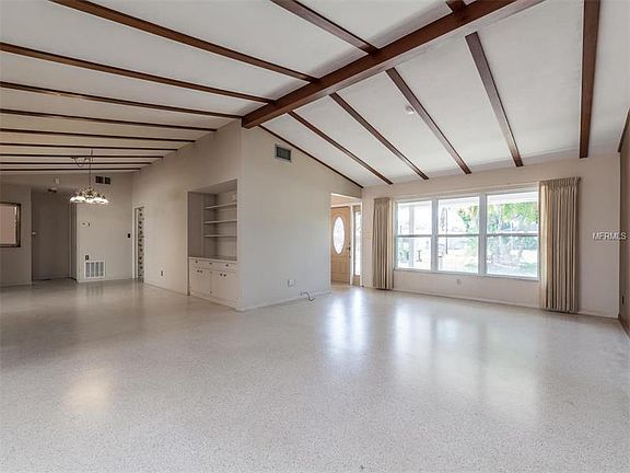 Spacious 3/2 split plan home with a great layout includes many design features for today's buyers! Custom designed with well proportioned rooms, this home has remained in one family for more than fifty years. The great room and dining area have beamed vaulted ceilings and terrazzo floors that have never been damaged with carpet strip nails. Four sets of sliders open to a 34-foot porch and extended caged lanai - ideal for entertaining large groups of friends or for quiet outside relaxation overlooking your private back yard. The kitchen has huge pantry and the master suite features a large walk-in closet and walk in shower. The home is loaded with extra closets and the garage is 29 feet deep - the answer to all your storage needs. Roof installed in 2007, AC in Dec 2015, double pane windows and garage door replaced in past 15 years. When remodeled, this will make a fabulous home for many years to come. Located across from Sara Bay Country Club midway between Sarasota and Bradenton, this home is convenient to beaches, great shopping and restaurants, and all the many cultural facilities the area is noted for.