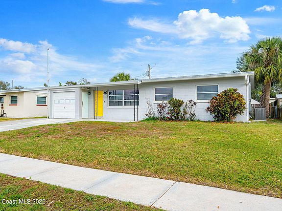 Centrally located, this 2 BD, 1.5 BA, concrete block home is move-in ready! Home was previously a 3 bedroom, was converted to a 2 bedroom to create a larger primary bedroom. Large screened in patio and backyard with room for a pool & has a concrete pad for a shed. Laundry room houses the half bathroom (shower stall & sink). All cast iron plumbing has been removed and incoming pipes are PVC. Metal roof (2016) and gutters, new flat roof (2021) over the patio. HWH 2020. A/C 2013.