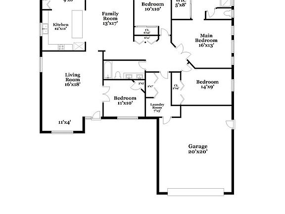 Two bathroomsEat-in kitchenAttached garageSafely-enclosed yardArched windowsColorful exteriorBig center island