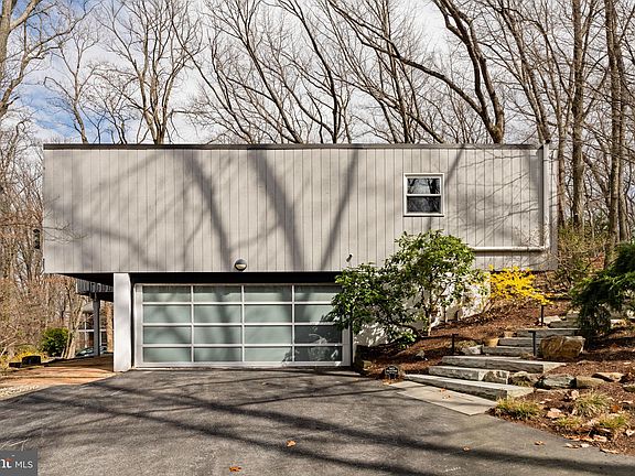 Perched on a hillside and surrounded by trees, this home feels like a modern treehouse, immersed in nature in every season. Walls of windows bring the outdoors in, offering ever-changing views of the wooded landscape—golden leaves in fall, snow-dusted branches in winter, and a lush green canopy in spring and summer. The house is positioned to take in the scenery from every room, creating a sense of quiet retreat while still feeling open and connected. The main level is designed for easy living, with a fireside living room that flows into the dining area and kitchen. A custom bar with open and closed storage, along with a wine refrigerator, makes for effortless entertaining. The kitchen, with its quartz countertops, Wolf gas stove, and counter seating, is as functional as it is beautiful—especially with its sweeping views toward Valley Forge Mountain. The primary suite feels tucked away among the trees, with an updated bathroom that blends comfort and simplicity. A second bedroom and half bath complete the main floor, while the lower level offers two additional bedrooms, a full bath, and a cozy family room with another fireplace. From here, there’s also access to the oversized two-car garage and laundry area. More than just a house, this is a place to experience nature’s rhythms—morning light filtering through the trees, the hush of snowfall, the vibrant greens of summer. A quiet perch, just minutes from the everyday conveniences of the Main Line.