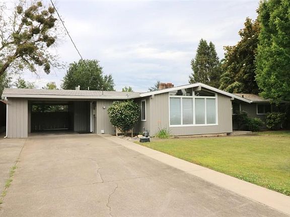 A classic! Homes with style and great lines like this one rarely come along in this price range. Built in 1959, this one story 1728 square foot home features vaulted, beamed ceilings, picture windows, double sided brick fireplace, updated flooring, newer appliances and a bright, open living space. Living room, Dining area, Kitchen with garden window plus a bonus room with glass doors to the patio. Three bedrooms, two baths and laundry room complete the floor plan. Gas heat, central air conditioning, an attached finished carport with locked storage areas, paved driveway with room for off street parking, mature landscaping with front sprinklers, fenced backyard with garden area and roses, storage shed for garden equipment, district irrigation and city services. This lovely home is close to city schools, a neighborhood park and all the conveniences of living in town while enjoying a low traffic cul-de-sac street. Immaculate inside and out and move in ready!