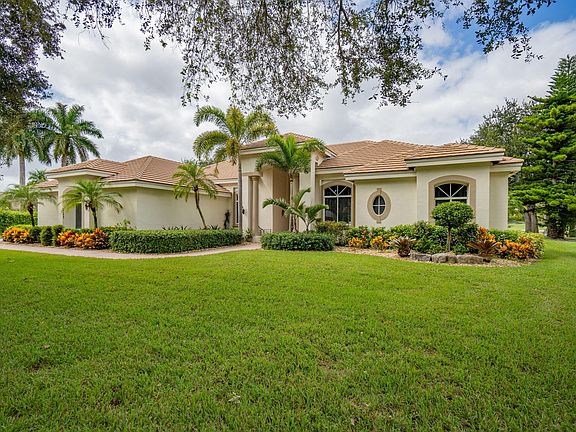 Sought after BINKS (ESTATES) 4 BR, 3 BA home sits on 1/2 acre w private lot on Wellington National Golf Course signature 18th fairway, w water feature, and green. Living room, family room, eat in kitchen, breakfast room, and master bedroom all have stunning views of the lake and course. Entering the double front entry door exposes an unobstructed view of the course through the window! ENTERTAIN, ENJOY & RELAX in the large screened patio areas w gorgeous heated salt water pool, beach area & spa with therapeutic jets and watch your favorite sporting event on the patio's flat screen tv. Home features incl Travertine marble flooring, a light and bright kitchen w quartz countertops, plenty of cabinets, large walk in pantry, newer appliances including a Bosch double oven, GAS cooktop, more plantation shutters in the family room and breakfast room. The master bedroom has a tray ceiling and DOUBLE walk-in closets. Main bath is well-appointed with 2 sinks, dressing table, quartz countertops, step-in shower and separate tub. 3 additional bedrooms are stacked W a updated bathroom with 2 sinks, and shower/tub. Home includes a newer tile roof (YEAR), 2 (zone) a/c units, new water heater, extra deep 3 car garage and extended paver driveway, fenced side yard, fire pit, new accordion hurricane shutters and a gasoline or propane fueled generator. Nestled in the highly sought-after community of Binks Estates, this gated community is close to great schools, equestrian venues, airport, shopping, restaurants and so much more! Steps to Wellington National Golf Club and restaurant. Membership in Country Club is not required. THIS PRISTINE HOME WONT DISAPPOINT! 5 yrs remaining on roof warranty (installed 2016)