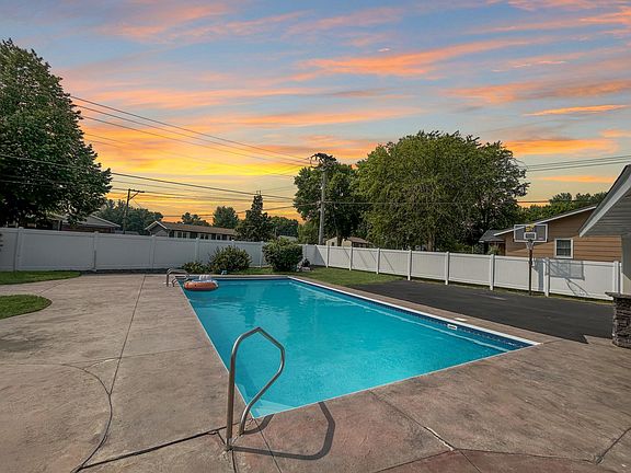 Imagine retiring or after a stressful work day, to be able to step out to your fenced-in yard from your theater room, turn on the backyard grill for burgers, shoot some hoops, then take a refreshing dip in your very own pool. This modern home has all the features and more a person dreams of with its large theater like family room, open kitchen with gas cooktop, granite Cambria countertops, a cozy hearth area with fire place, plus a formal dining area. Also on the main floor is a separate living room area and built in bar area for entertaining. The owners ensuite has a custom tiled walk in shower and walk in closet, there are 2 more bedrooms and an updated full bathroom. The basement offers a laundry area 4th bedroom, 3/4 bathroom, bonus room, another living area, and storage. The attached 2-car garage is insulated and heated. Although in town, the privacy fence provides the comforts for living and entertaining at home both inside and out. See updates. Call today for a showing.