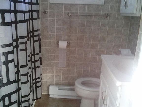 Large first floor apartment, front two rooms wall to wall carpet. Additional two rooms hardwood floors. Kitchen hardwood, bathroom tile. Kitchen features all appliances in new or nearly new condition. Washer./dryer combo in unit. Bath is tub and shower. Back porch leads to deck and yard. Tenant pays garbage and utilities, Landlord pays sewer and sanitary