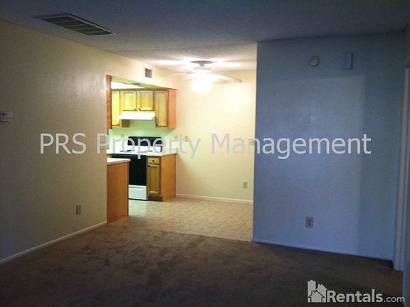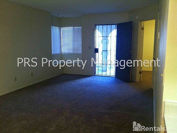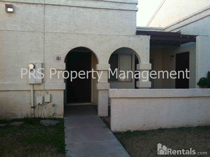 One level townhome. Dining area, living room. Updated kitchen with range/oven, dishwasher, disposal, refrigerator. Inside laundry closet with hook ups only. Ceiling fans in bedrooms. Master bedroom with walk-in closet and door to patio. Master bathroom with tub/shower combo. Front has a storage room and a patio. Community pool. 1 small dog allowed for an additional $30.00 per month. No cats allowed. Call Sue at 480-838-3500 ext 211 for viewing details