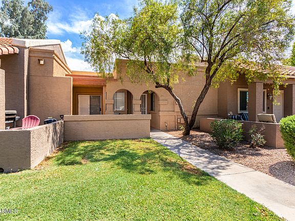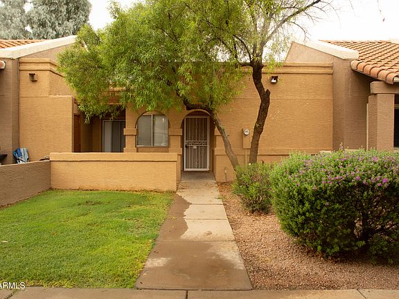 Come take a look at this nice and cozy townhome in a quiet Chandler location! It starts with a lush lawn front yard, mature tree, and a short paved walkway leading to a covered patio great for your morning coffee. A wrought-iron door entry opens out to a cozy living room, wood laminate flooring, tile in all the right spots, and neutral paint. The eat-in kitchen features wood cabinetry and built-in appliances. The nice-sized bedroom has a private front patio exit and a full bathroom. Near shopping & easy access to loop 202! Come and see it for yourself today!