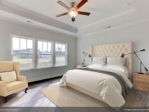 The Vernon features four bedrooms, three-and-one-half bathrooms, and a large loft area upstairs. As you enter this home a spacious eat-in area leads you into the kitchen showcasing stone grey cabinets, granite countertops, and a gas stainless steel range. The primary suite on the main floor has a boxed ceiling, dual vanities, separate tub and shower, and a walk-in closet. Enjoy the spacious, open family room featuring a gas fireplace, and the large covered porch outside creates even more space for entertaining for you to enjoy your brand new home. Upstairs, the guest suite features a large bedroom, private bathroom, and a huge walk-in closet. Two additional bedrooms, another bathroom, and open loft space make this the perfect home for those looking for space and functionality.