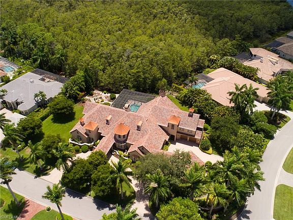 Welcome to this stunning estate in Audubon Country Club. This expansive property's southern exposure overlooks the wooded cypress preserve. Relax on the screened in outdoor living space, while enjoying the sounds of wildlife. The interior features a 19' tray ceiling, stunning chandeliers, large kitchen, 3 guest suites, study, leisure room, morning room and a large loft. The master bedroom overlooks the master lanai and garden area. An adjacent sitting room with zero corner sliding glass doors that lead out to the master outdoor living space. The master also features 2 large walk in closets, his and her bath and steam shower. The outdoor living space is great for entertaining with a large sitting area, fireplace, outdoor kitchen, and just steps from the pool and spa shaded by palm trees. The copper trimmed cupolas add a stunning appeal to this luxurious estate. The attached 2 car garage has AC, while the adjacent 2 car garage has ample storage space. Electric hurricane shutters, whole house generator, interior freshly painted, slate roof replaced in 2020. Just minutes from Naples finest dining, shopping and beaches. Be sure to watch our Home Showcase Video!