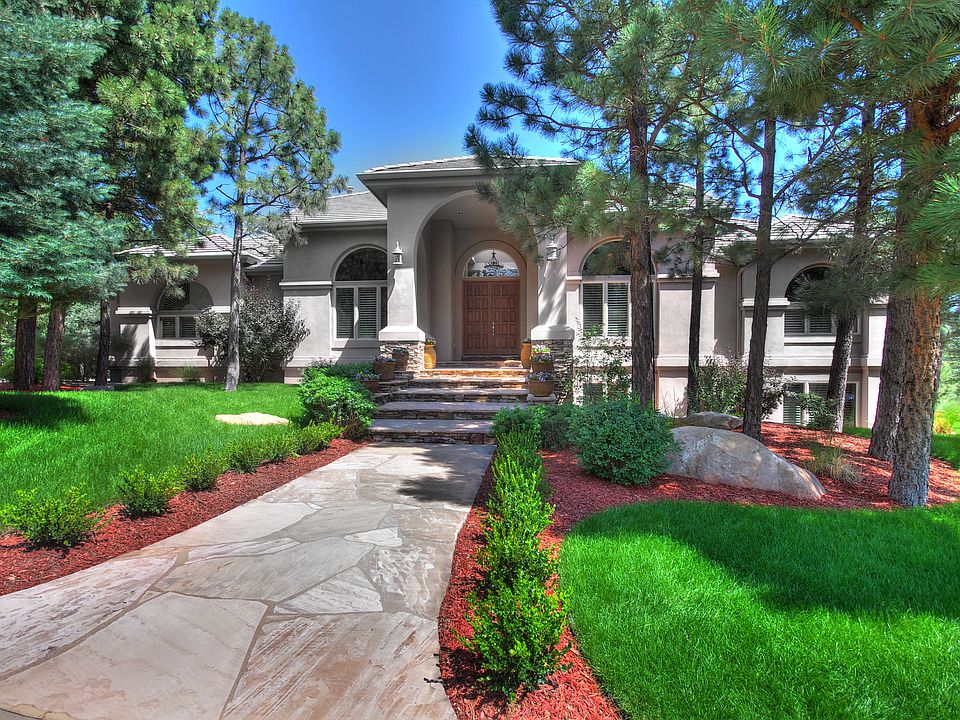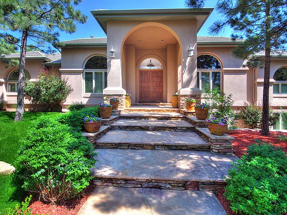 Luxury abounds in this freshly remodeled Broadmoor Resort Community home nestled in the trees in a park like setting. Tasteful hard to find contemporary touches grace this elegant home which exhibits newly updated kitchen and baths. Enter to beautiful hardwood floors and stunning chandeliers bringing warmth and light into the home. Walk past the elegant formal dining room and office with built ins into the open great room with fireplace and kitchen area. Contemporary finishes and colors add to the stunning upgraded kitchen with large center solid slab Carerra marble top. From the kitchen walk out to a private deck that over looks a large flat grassy yard with mature trees. The serene master also walks out to this patio for morning coffee. The large tastefully decorated master suite offers a cozy fireplace, sitting area, his and hers walk in closets and a large 5 piece bath with large soaking tub, double shower and two vanities. Walk down to the lower level where you will find a large game room with media center, a workout room and three generous sized bedrooms one with a private bath and the other two sharing a full sized Jack and Jill bath. There is an additional half bath on this level as well. Lower level opens to a large patio plumbed for a hot tub overlooking the beautiful yard. Located in the desirable Broadmoor Resort Community this home is situated on a quiet street close to the private system of hiking trails that the residents enjoy on a daily basis. The area boasts award winning Cheyenne Mountain District 12 Schools and is minutes to Fort Carson, Downtown Colorado Springs, shopping, and restaurants. The before and after remodel pictures are astounding. This home is a special gem!