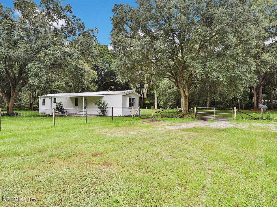 Single wide mobile home with front and back patio. Sits on a very large lot. With fenced yard.