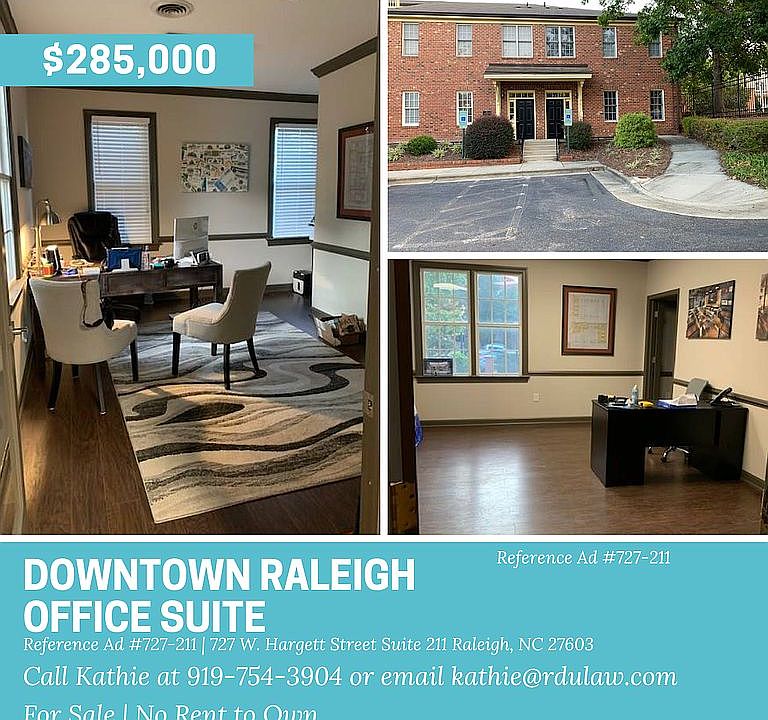 Here is a GREAT opportunity to own an office condo in Downtown Raleigh. This unit (unit 211) has approximately 1100 square feet of office space that includes several spacious offices, great lighting, conference room, reception area, utility room, bathroom and kitchenette and it’s all ADA compliant. It also has a new HVAC system! This is located in the fast-growing warehouse district in downtown. Talk about a perfect location! Entertain clientele with a simple walk to multiple eateries and brew pubs. Contact lister/owner for details and please refer to AD#727-211. Ask to speak to Kathie to schedule your showing today. This one is going to move fast and it’s priced just right! 727 W. Hargett Street, Suite 211 Raleigh, NC 27603: Asking $285,000 Will not accept offers for rent to own. This is for sale by owner.