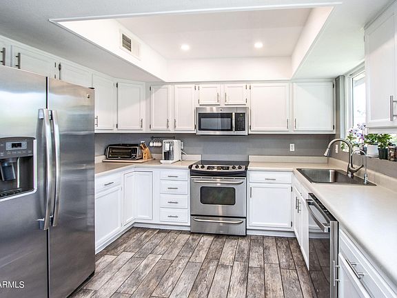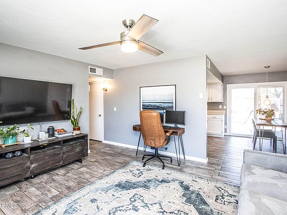 Great starter home with NO HOA!! 2 bedrooms, 2 baths, with over $30K in upgrades. Updated white kitchen with stainless steel appliances, new Low-E windows, wood look title flooring, and newer paint throughout. Low maintenance front yard and big back yard with grass, delicious orange and pomegranate trees, and large walk-in shed. Conveniently located near park, schools, and lots of shopping options! Don't miss this cute gem!!