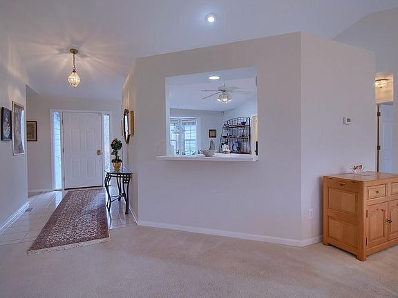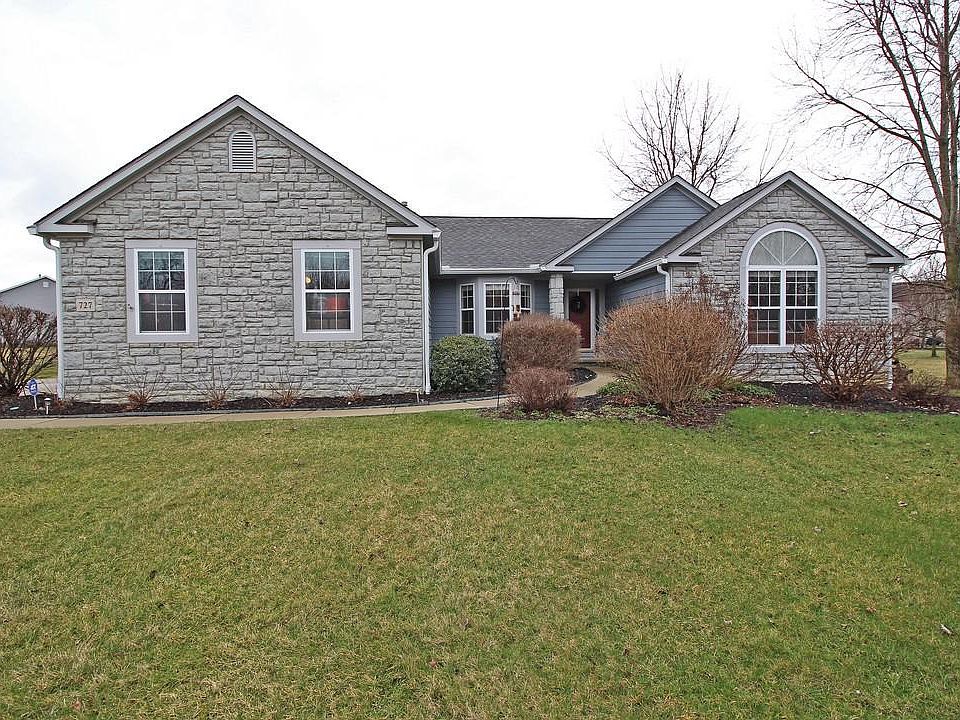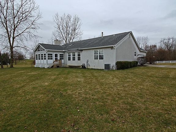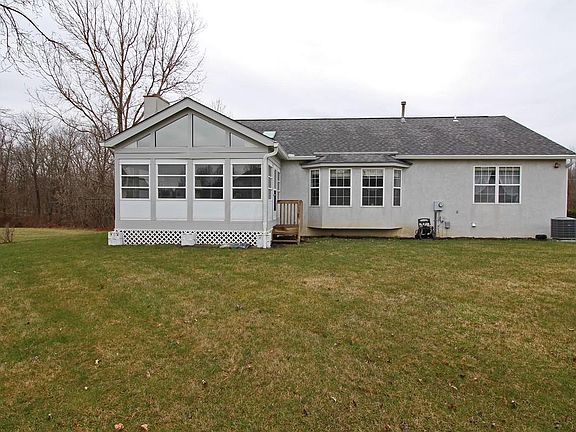 This well maintained 3 bedroom ranch home is situated on almost 1/2 acre lot on a semi-private dead-end drive. Woods across from you and to the west side of you! This lovely home boasts an open floor plan w/cathedral ceilings in the great room which opens up to the dining area & the 3 season room! Imagine drinking your morning coffee & reading a good book out here. White cabinets & woodwork compliment the kitchen with stainless steel appliances. 3 bedrooms, 2 full baths adorn the rest of the home including the updated master bath. Centralized vac for your convenience! FULL basement is HUGE and can be finished to your desire! roof~2008, skylights, gutters, downspouts ~ 2015, leaf guard and sump pump ~ 2017, power washed and painted stucco 2017 (Village mows the huge easement on the west)