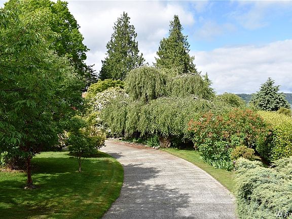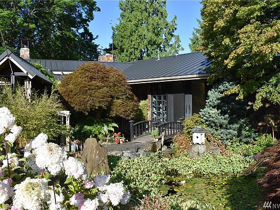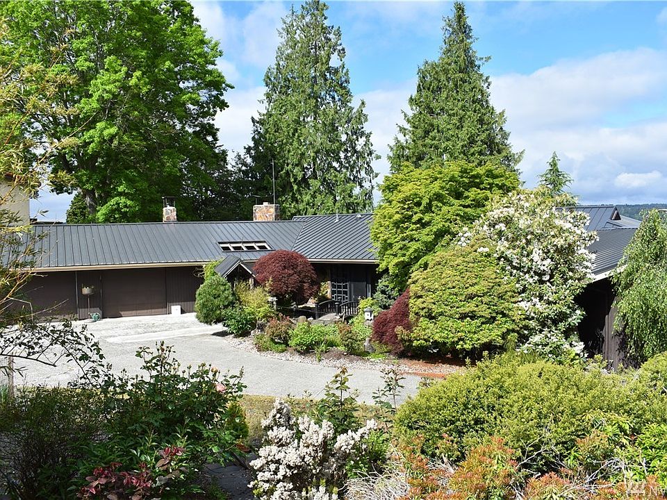 Sound and mountain views in Old Town. Sprawling custom rambler on west-facing bluff property. Amazing grounds w/colorful plantings, mature trees and serenity pond. Entertain in style. Lovely entry w/Asian flair. Formal dining, sunken living rm, great room kitchen. Window walls, hydronic heat, wood floors, 3rd bd/office. Versatile guest cottage/shop is original to the property built in 1910